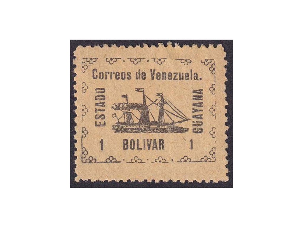Poštovní známka, Venezuela, Guyana, 1903, 1 B Loď, MiNr.23I, * po nálepce