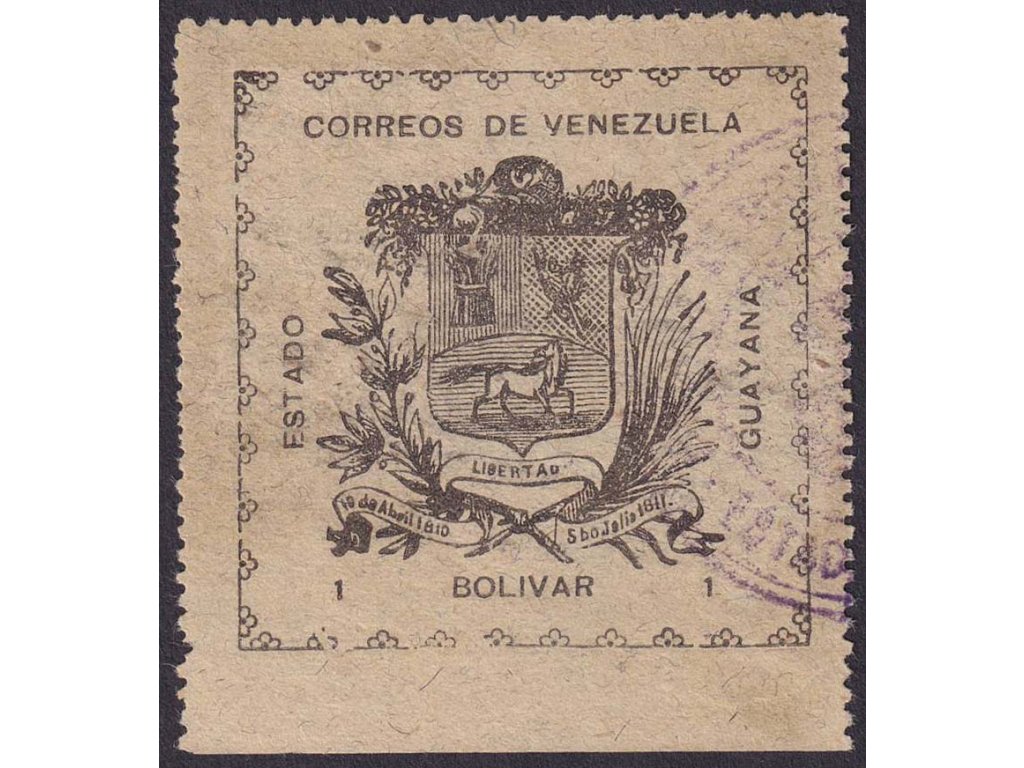 Poštovní známka, Venezuela, Guyana, 1903, 1 B Revoluční, MiNr.18I, razítkované, v dolní části natržení