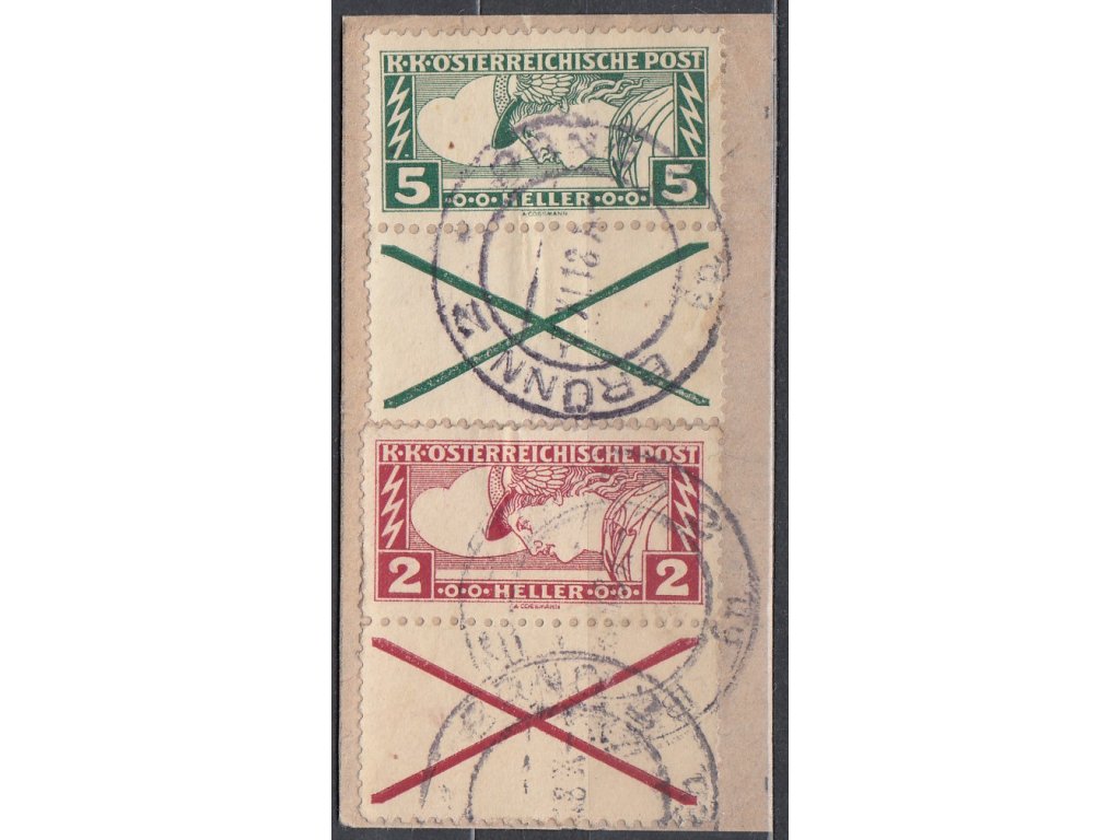 Výstřižek se zn. 2 a 5h Spěšné s kupony, razítko BRNO 7.11.18, vzácné