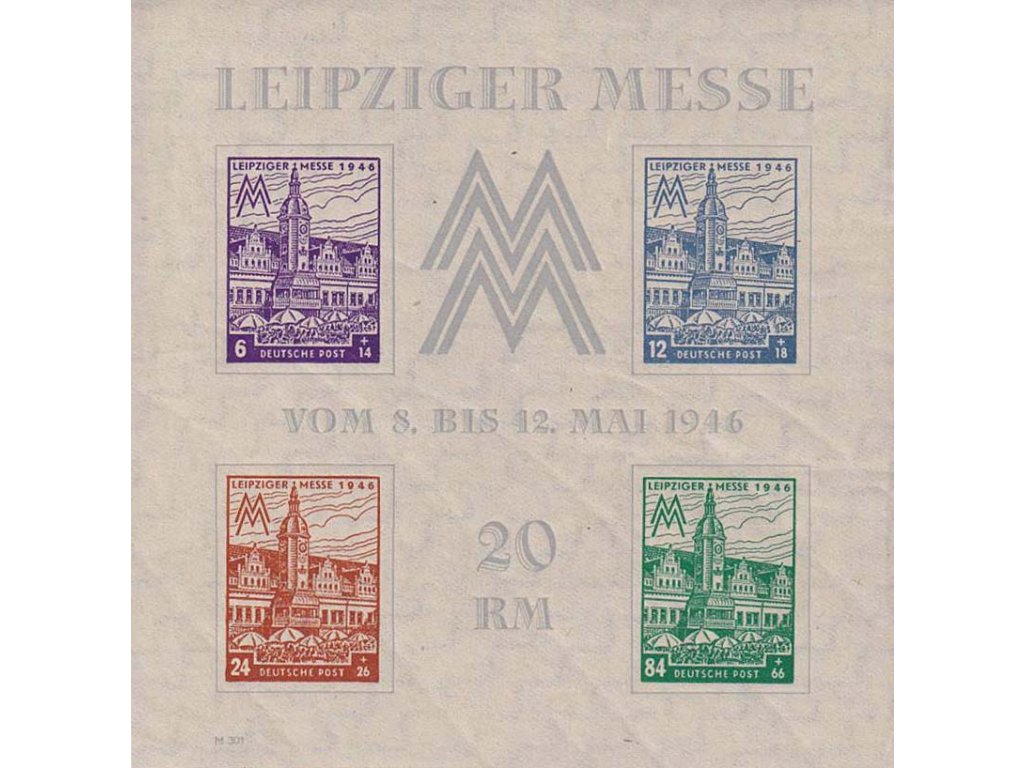 Poštovní známka, West-Sachsen, 1946, aršík Lipský veletrh, MiNr.Bl.5X, **/* , obvyklé archové lomy - viz. foto