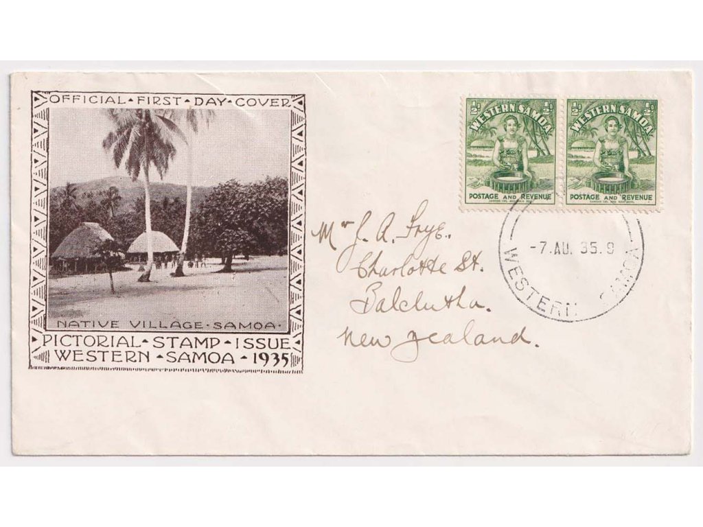 Poštovní celistvost, Western Samoa, 1935, DR Western Samoa, obálka zasl. v roce 1935 na Nový Zéland, stopy pošt. provozu