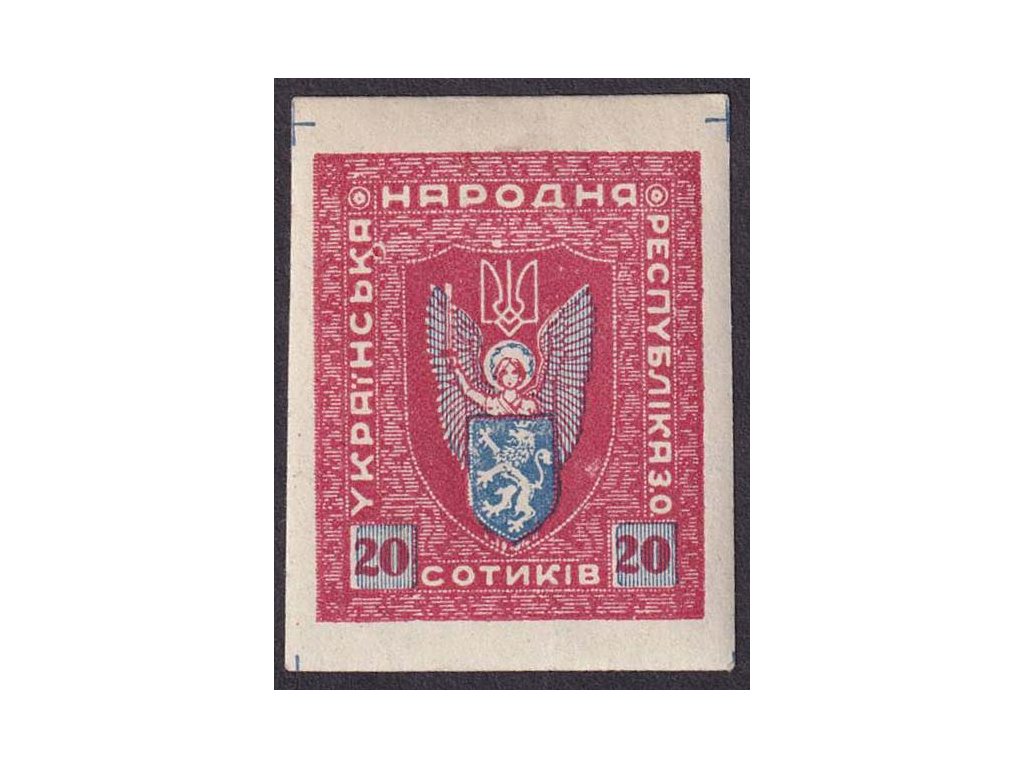 Poštovní známky, Westukrajina, 1919, 20 St Znak, nevydaná, * po nálepce