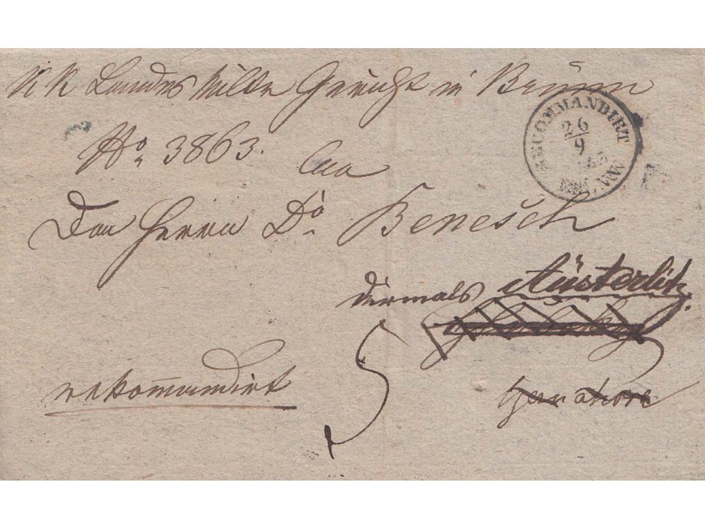 Wien Recommandirt, skládaný dopis z roku 1863, dosíláno, stopy stáří