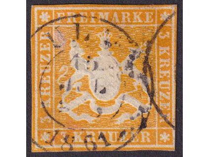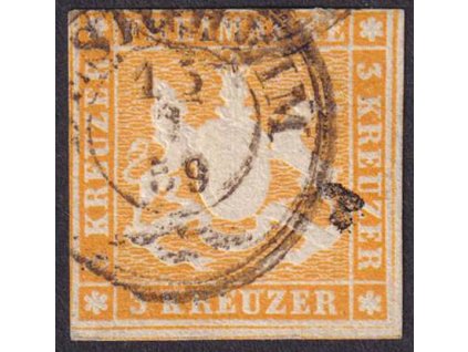 Württemberg, 1857, 3 Kr Znak, MiNr.7, razítkované